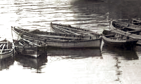 Small boats like the ones we see here are called "yawls", or "rippers" as they were used for in-shore "ripping" a type of line fishing using a line with several hooks and a heavy sinker weight which was lifted and lowered quickly by the fisherman's outstretched arm. The movement made the hooks sparkle under the water and attract the fish.
